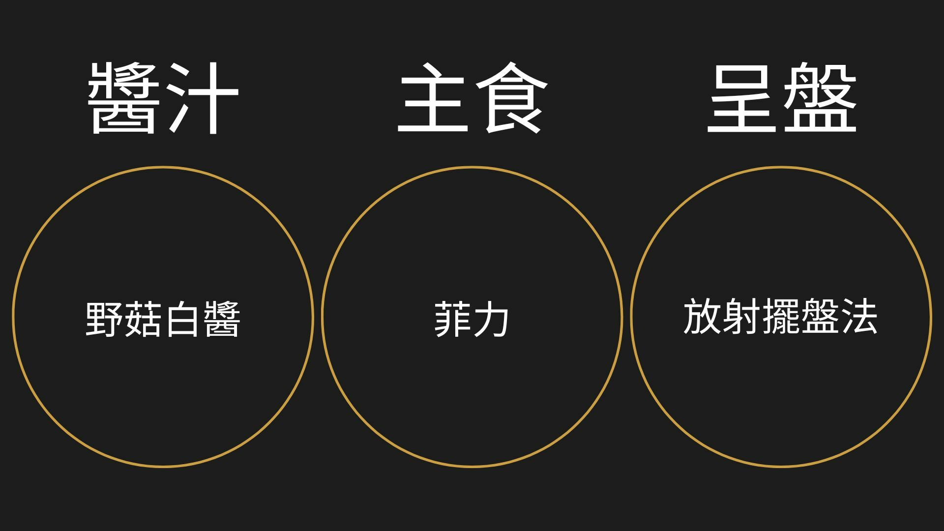 這次的擺盤是太陽神擺法,三分熟菲力搭配綜合野菇和綜合蔬菜,炎熱的夏天就想吃輕盈點,讓身體吃得健康也很重要,野菇白醬搭配檸檬的酸,在享用同時不會覺得白醬的厚重,反而嚐起來很清爽!