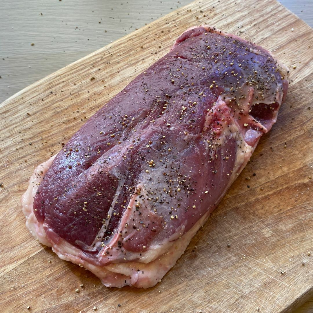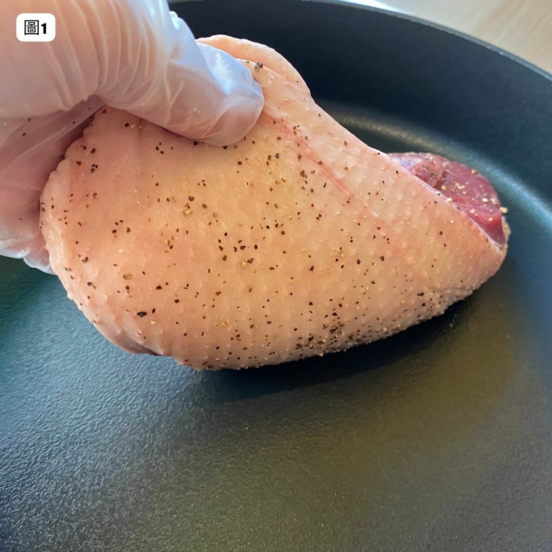 胭脂鴨會是真空包裝,均勻撒上鹽巴、黑胡椒粒調味。
