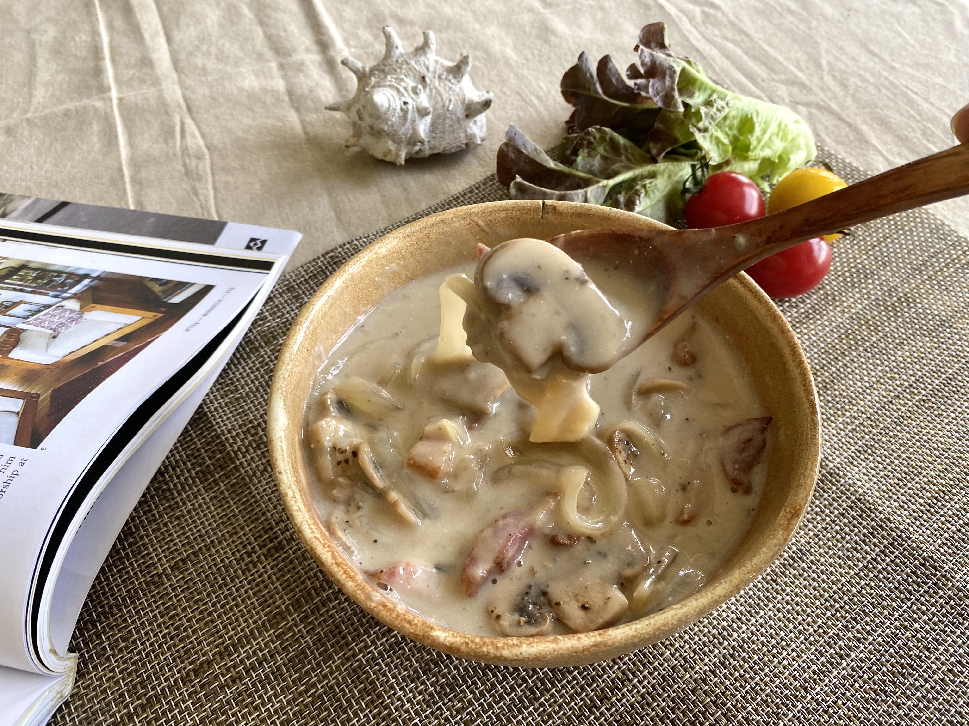 喜歡濃郁口感,也想來點儀式感,又想快速上桌的湯品,巧達濃湯就是最好的選擇,自己想加的食材和超市就能買得到的半成品罐裝蘑菇湯,就能成為一道開胃前菜!