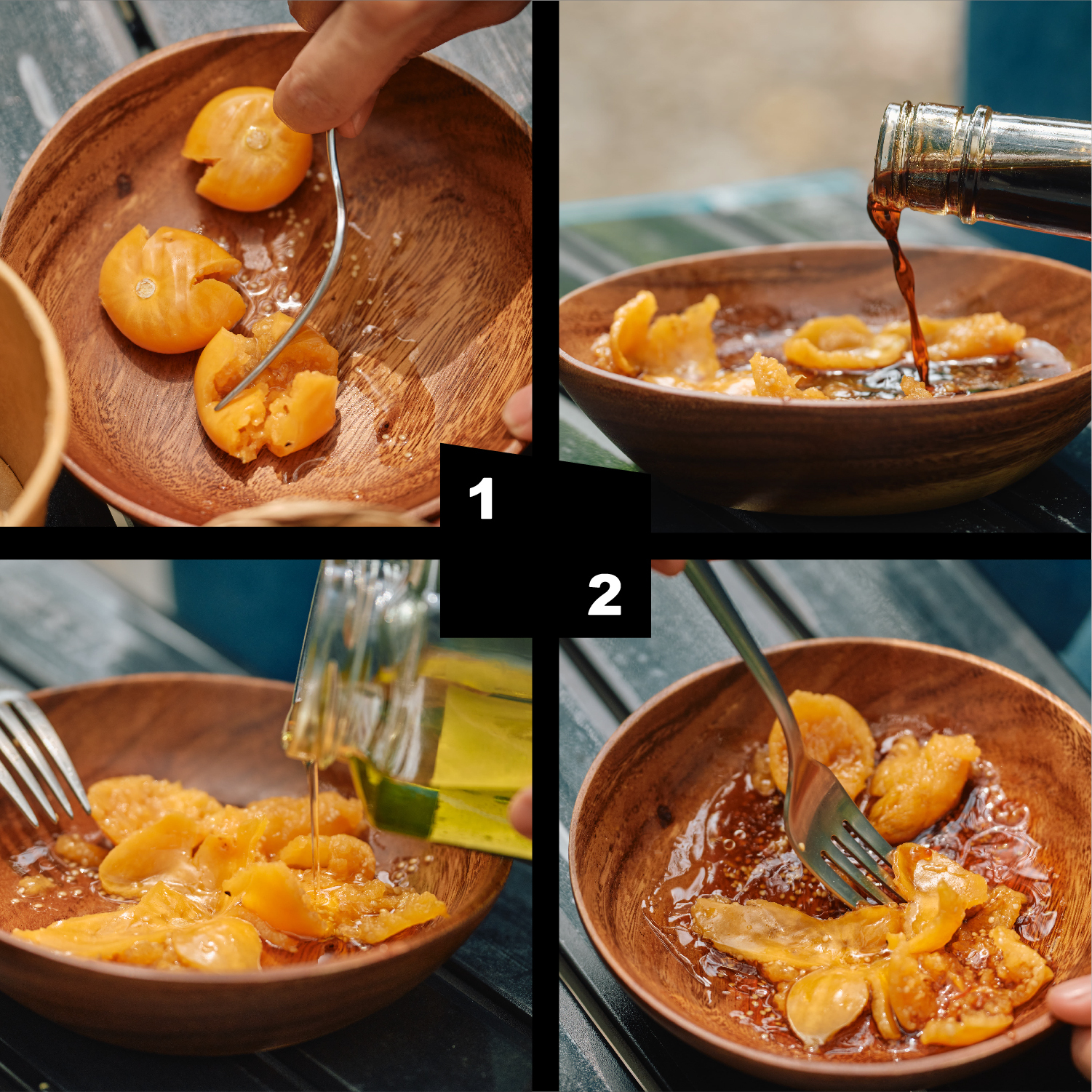 2.依照個人喜好加入巴薩米克醋、橄欖油攪拌均勻