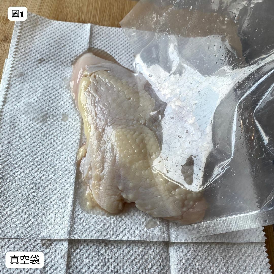 圖1.竹地雞胸肉是真空包裝,拆掉後洗淨。