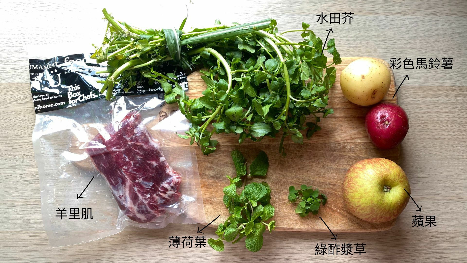 PARTS 羊里肌/彩色馬鈴薯/水田芥/薄荷葉/綠酢漿草/蘋果