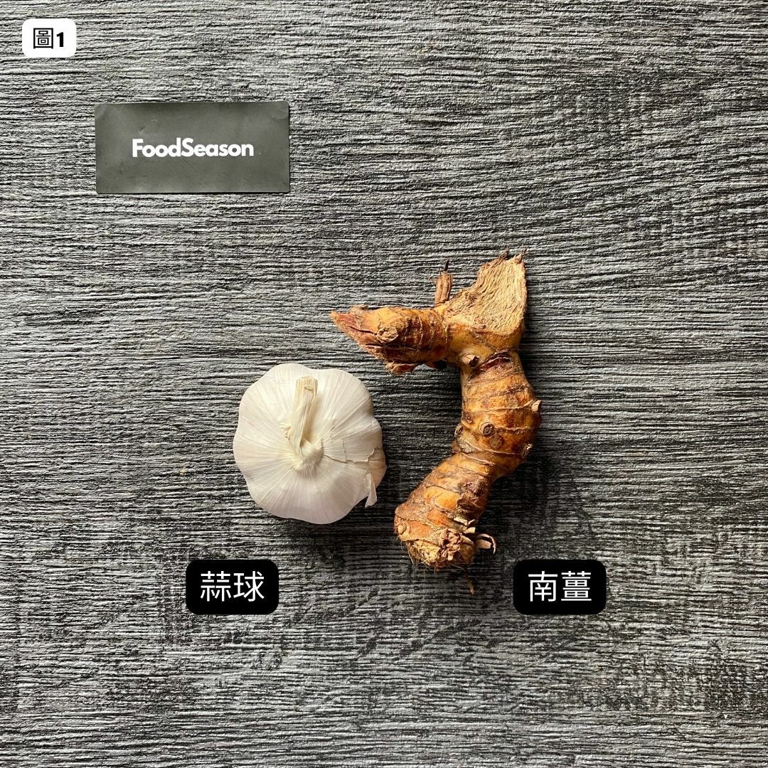 圖2. 1湯匙橄欖油,熱油鍋,將蒜頭末、南薑末爆香。
