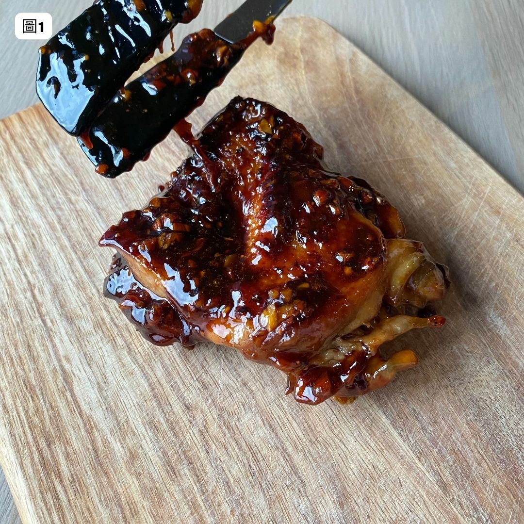 圖1. 將照燒竹地雞腿肉靜置一旁約2分鐘。