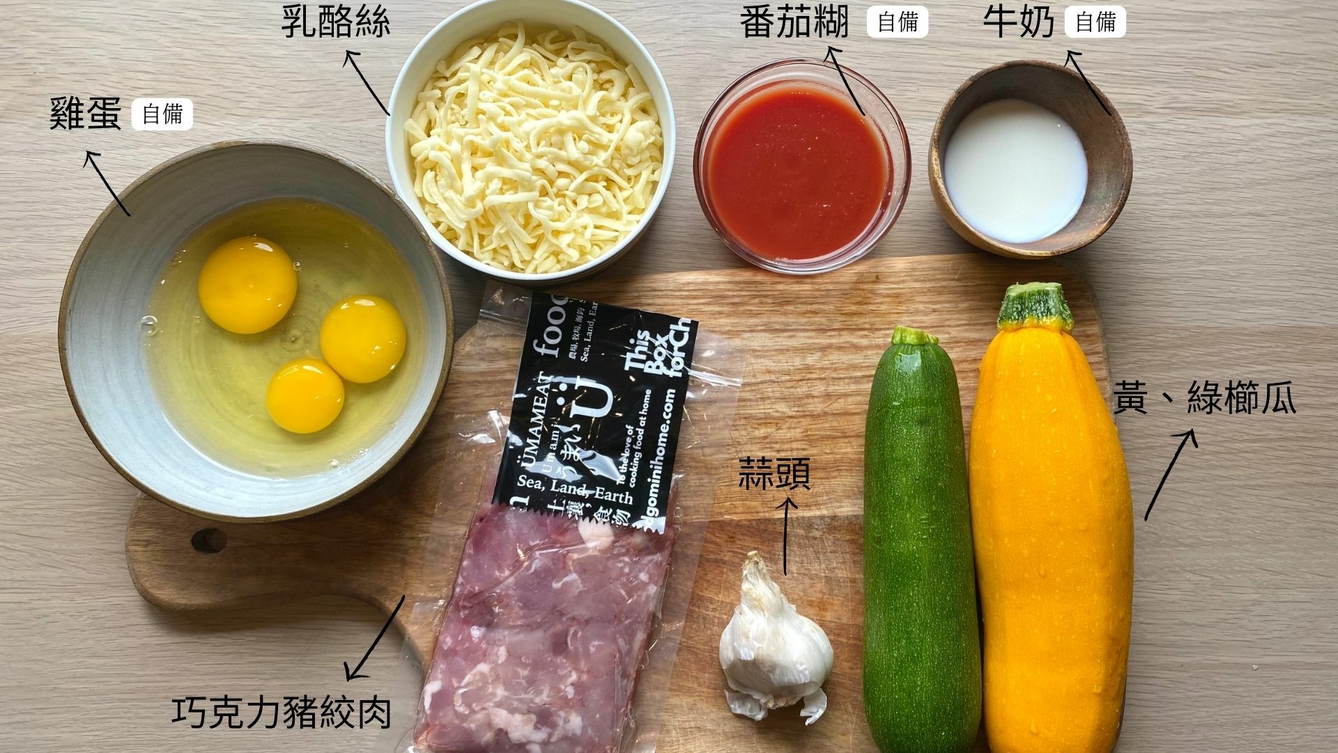 自備 雞蛋、牛奶、乳酪絲、鹽巴、橄欖油