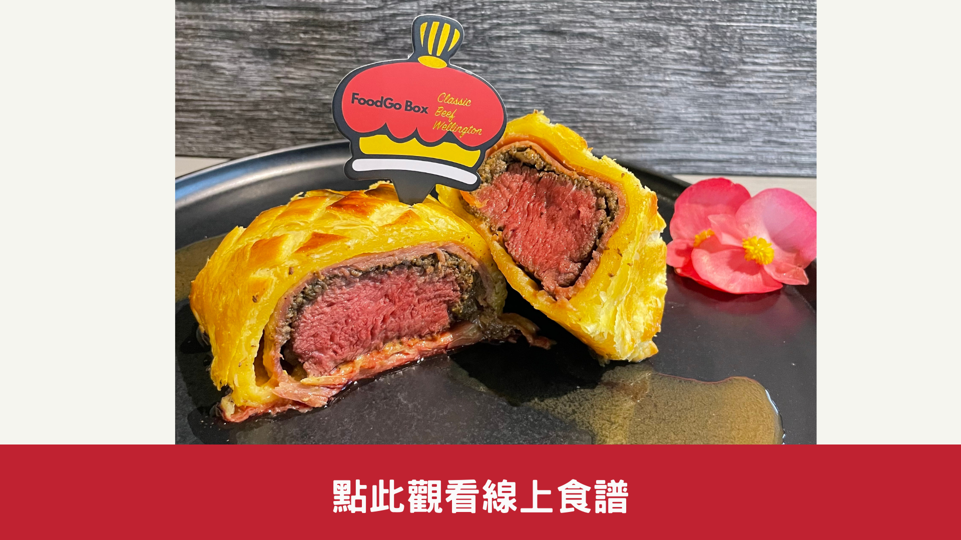 想自己完成威靈頓牛排嗎?FoodGo Box為您提前備置好蘑菇醬與生火腿等零件,在家跟著線上食譜即可做出令人驚豔的威靈頓牛排!