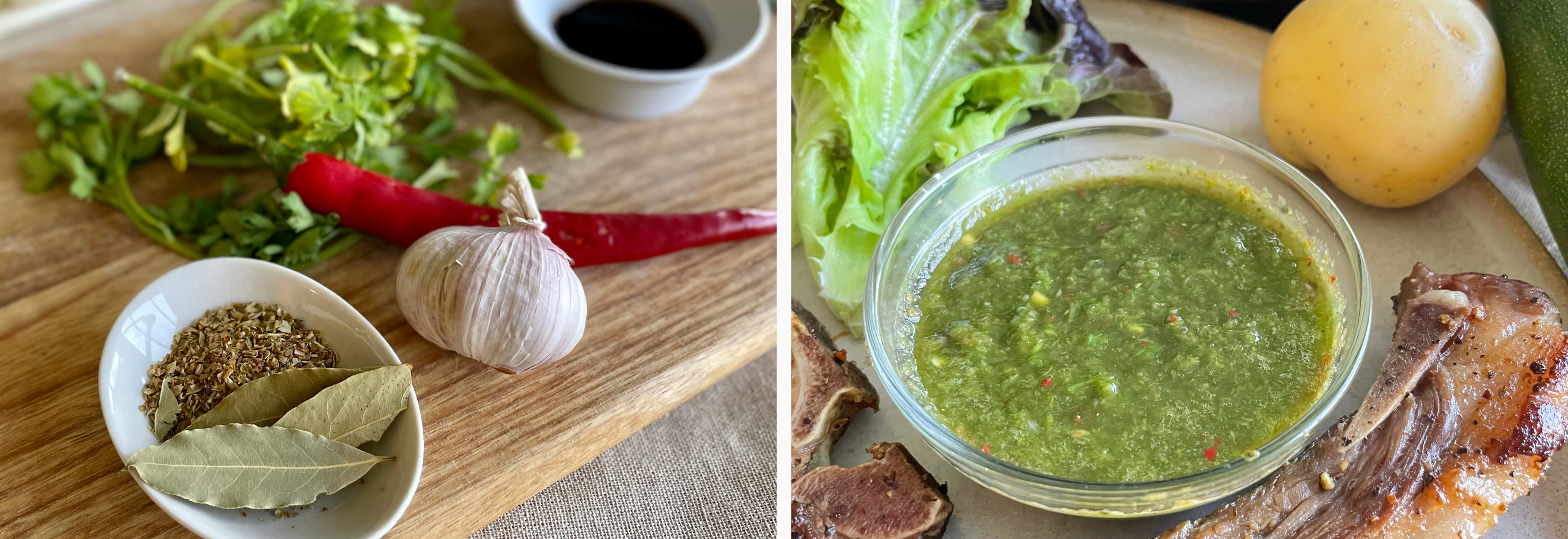 在南美洲,會吃到大量的肉類,搭配香草類所做的阿根廷醬,可以平衡油脂的油膩感外,更帶點清爽的香氣。