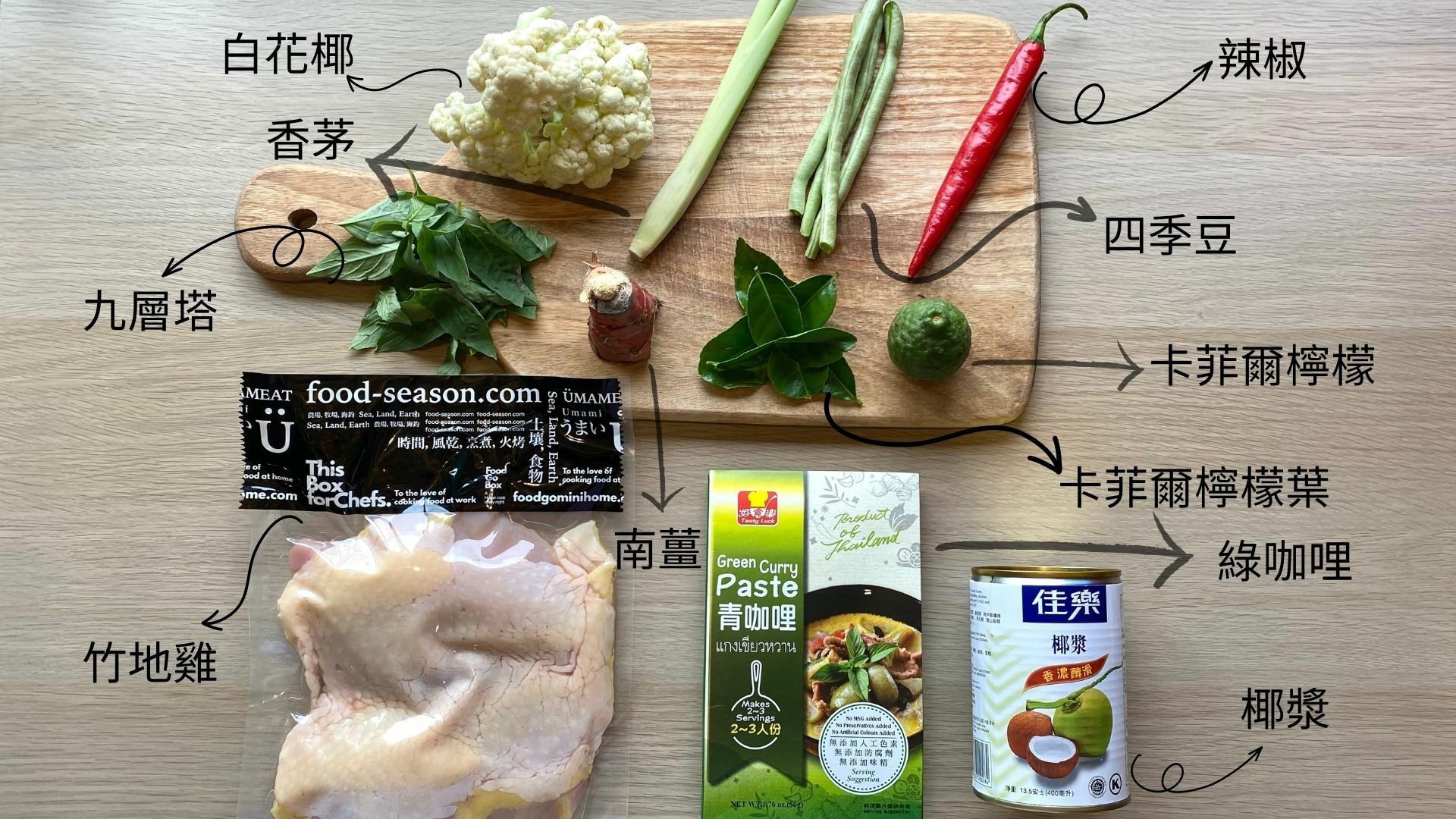 ★需自備食材:泰式綠咖哩醬、椰漿、四季豆、白花椰