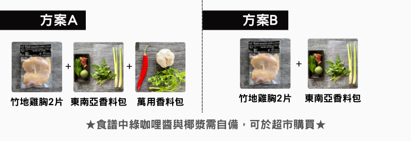 方案A: 竹地雞胸2片+東南亞香料包+萬用香料包