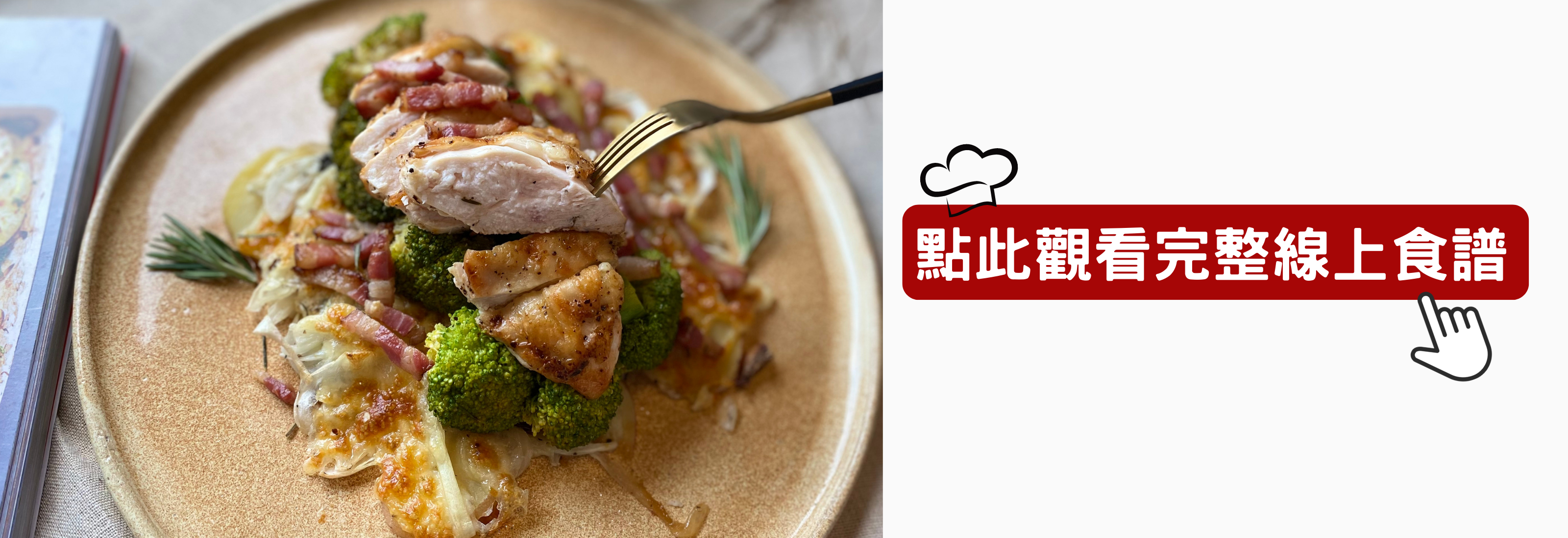 ★食材箱提供:竹地雞胸肉、雙筍蔬菜包、彩色馬鈴薯、洋蔥、煙燻培根、迷迭香、鼠尾草