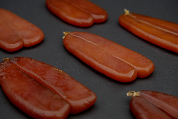 品名:九降風烏魚子/mullet roe/からすみ產地:新竹規格:約130g/片新竹九降風 天賜珍饈新竹地區得天獨厚的熟成環境,九降風造就此區烏魚子風味不凡。每年11月東北季風前收成烏魚,經職人手藝熟成,成為一片片頂級珍饈。獨一無二的風土環境,也使九降風烏魚子受到米其林餐廳的肯定。單一產地生成的烏魚子每年只有在11月的某兩天會取烏魚的卵再慢慢把它曬乾製作成烏魚子新竹獨特的九降風是高鹽度的海風使得烏魚子內部濕潤像是溏心蛋的內部一樣柔軟除了吃到烏魚子的鮮味也能吃到海風中淡淡的鹽香