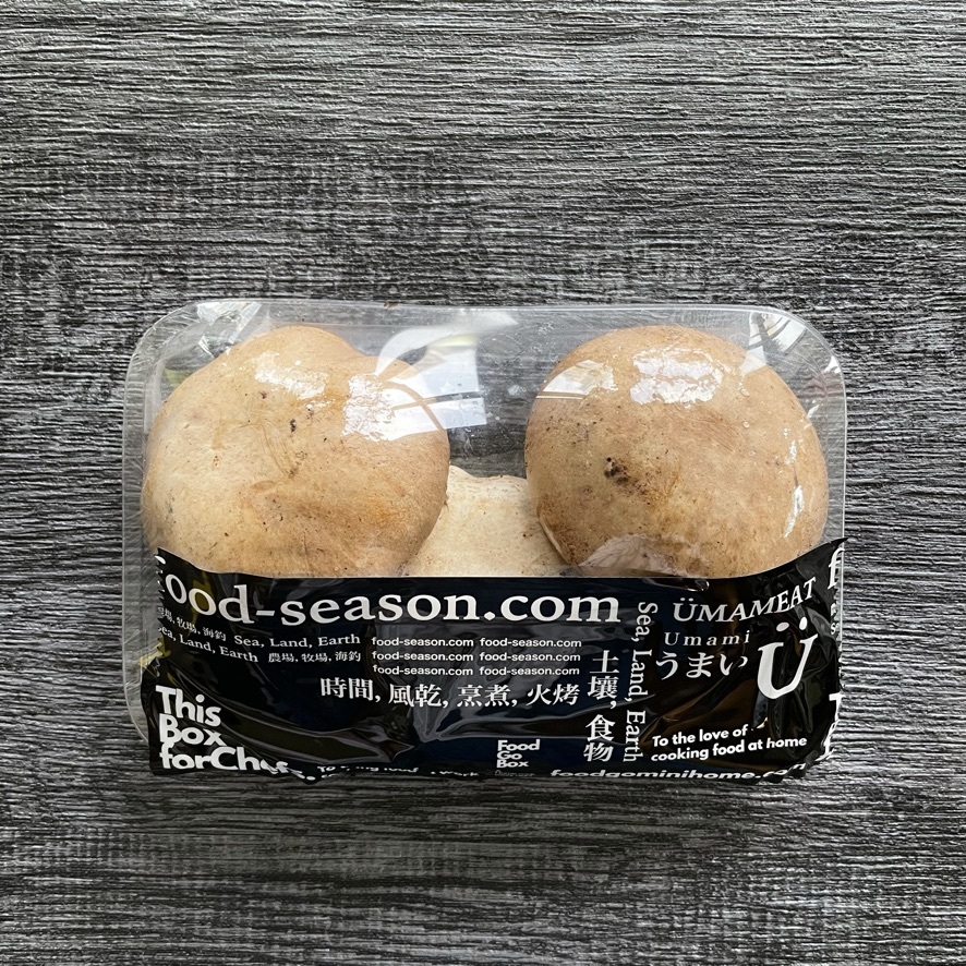 又稱作「波特貝勒菇」,是市場少見的優質食材!圓圓大大,約手掌大小外型,香煎後會散發出巧克力的香味,吃起來口感緊實,菇味不重。常用來煎、烤做成西餐配菜, 也可以整顆裹粉搭配海鮮去炸。許多人形容它吃起來有牛排的味道,故時常被當作餐廳中素食餐點的主餐。
