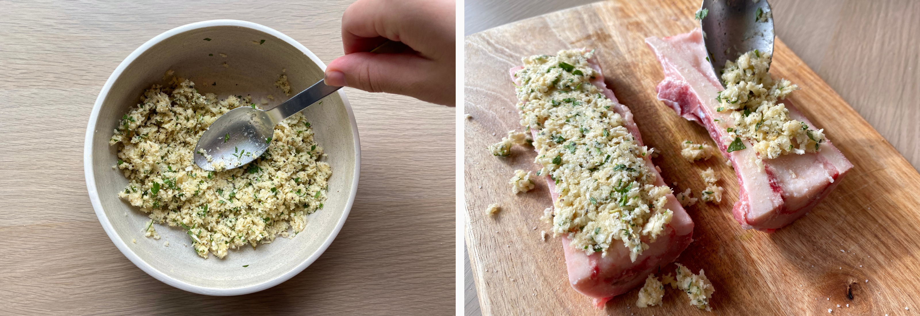 塗抹在牛骨髓上進烤箱,烤25分鐘至表面金黃酥脆。