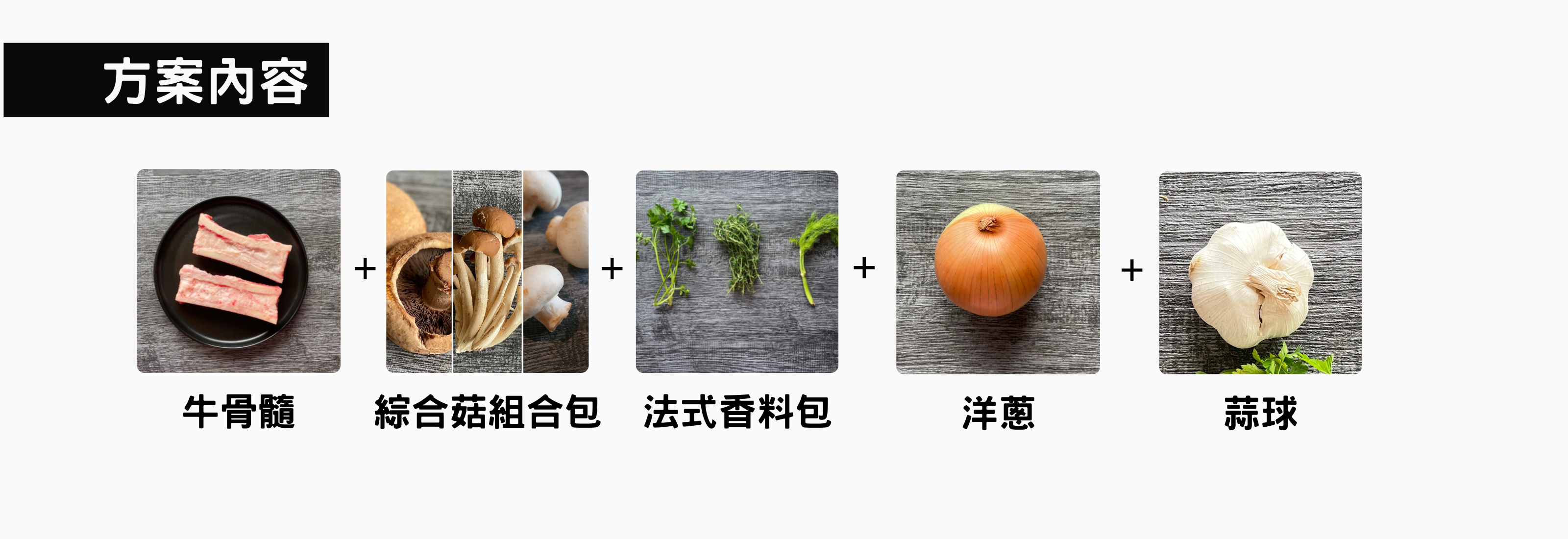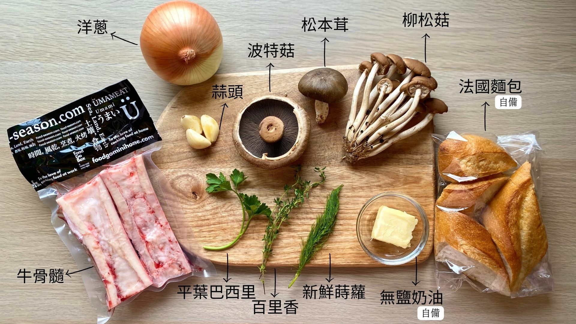 ★食材箱提供:牛骨髓、綜合菇組合、法式香料包、洋蔥、蒜球