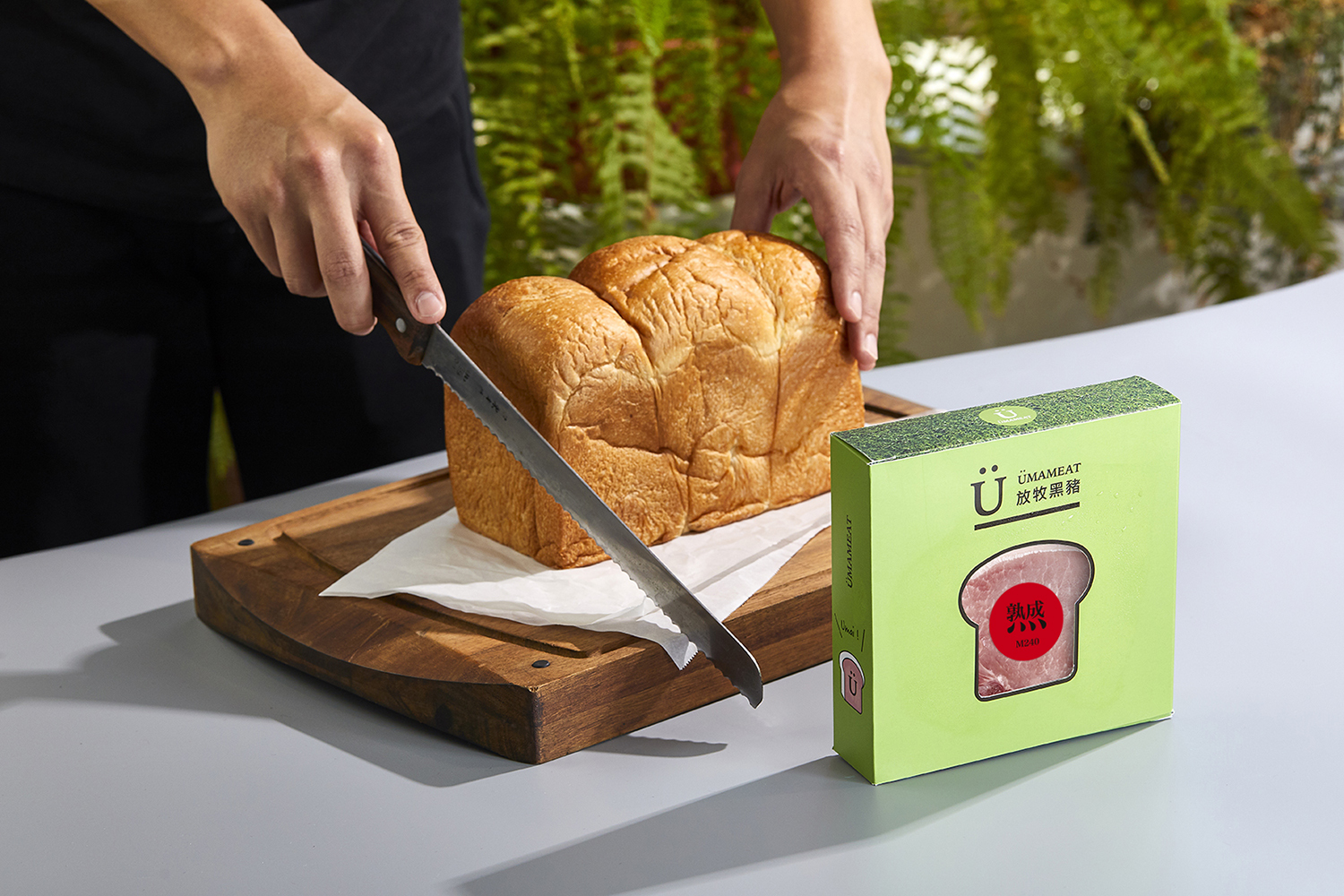 特殊的白土司切法,讓豬肉多了熟成的選項,現在豬里肌也能像牛排一樣熟成了,熟成後的放牧黑豬,肉質不乾柴,纖維變長、肉質變軟、油脂香甜。
