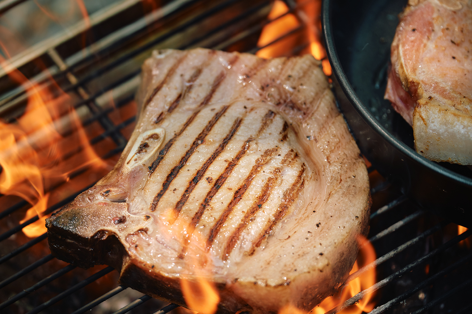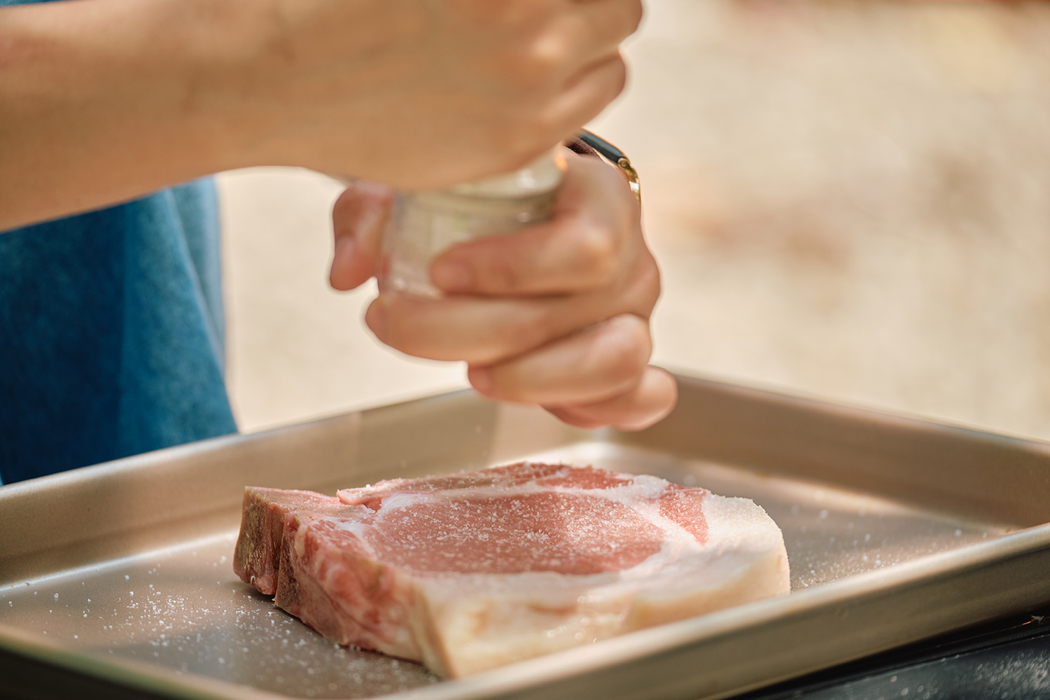 美味的關鍵在於,厚片分切和帶有少許的骨頭,在平底鍋煎烤溫度能慢慢滲入、外層油脂煎出咖啡色香脆口感,里肌肉保持水嫩度,每口都是鮮嫩欲滴,滿足感十足。